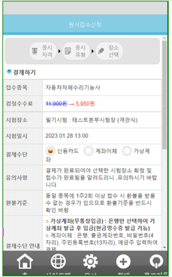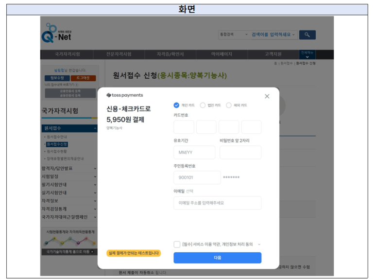 6. 응시료 결제(신용카드, 실시간계좌이체, 가상계좌 등