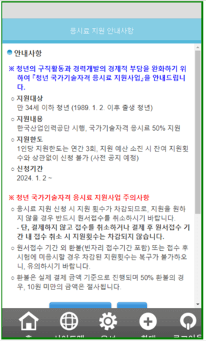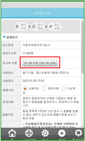 2. 응시료 지원 신청 후 결제 시 지원 회수가 차감 될수 있기 때문에 지원을 원치 않을 경우 원서접수 결제를 취소해야 함.