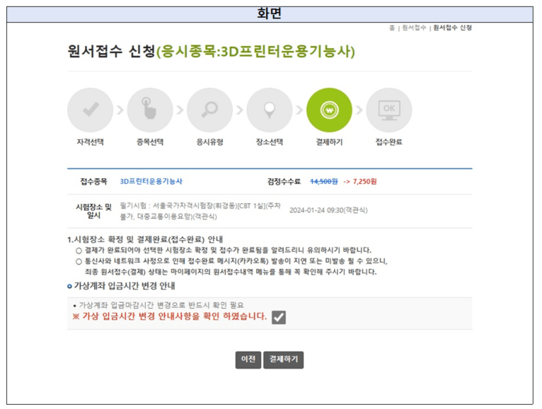 7. 응시료 결제(신용카드, 실시간계좌이체, 가상계좌 등)